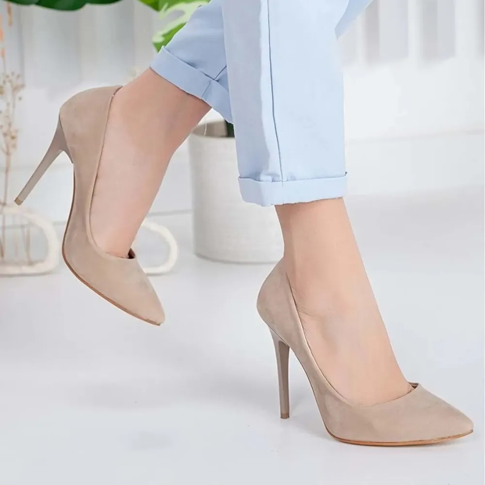 Key Features of Beige Suede Round Toe Stiletto Pumps