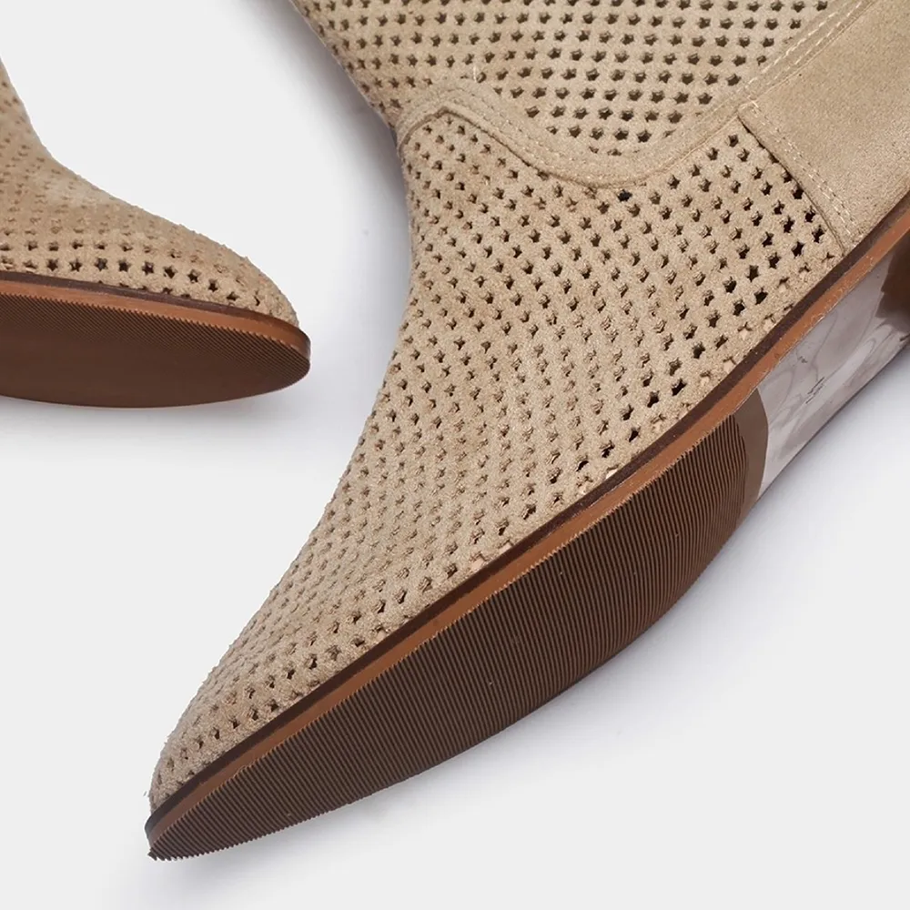 Crafted from soft perforated suede, these boots allow your feet to stay cool even in the heat. The laser-cut perforations create a unique texture that keeps airflow constant, giving you the perfect mix of comfort and elegance all day long.