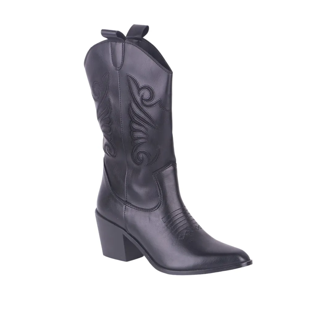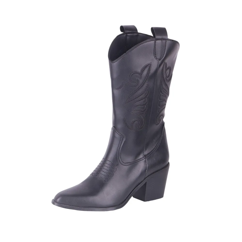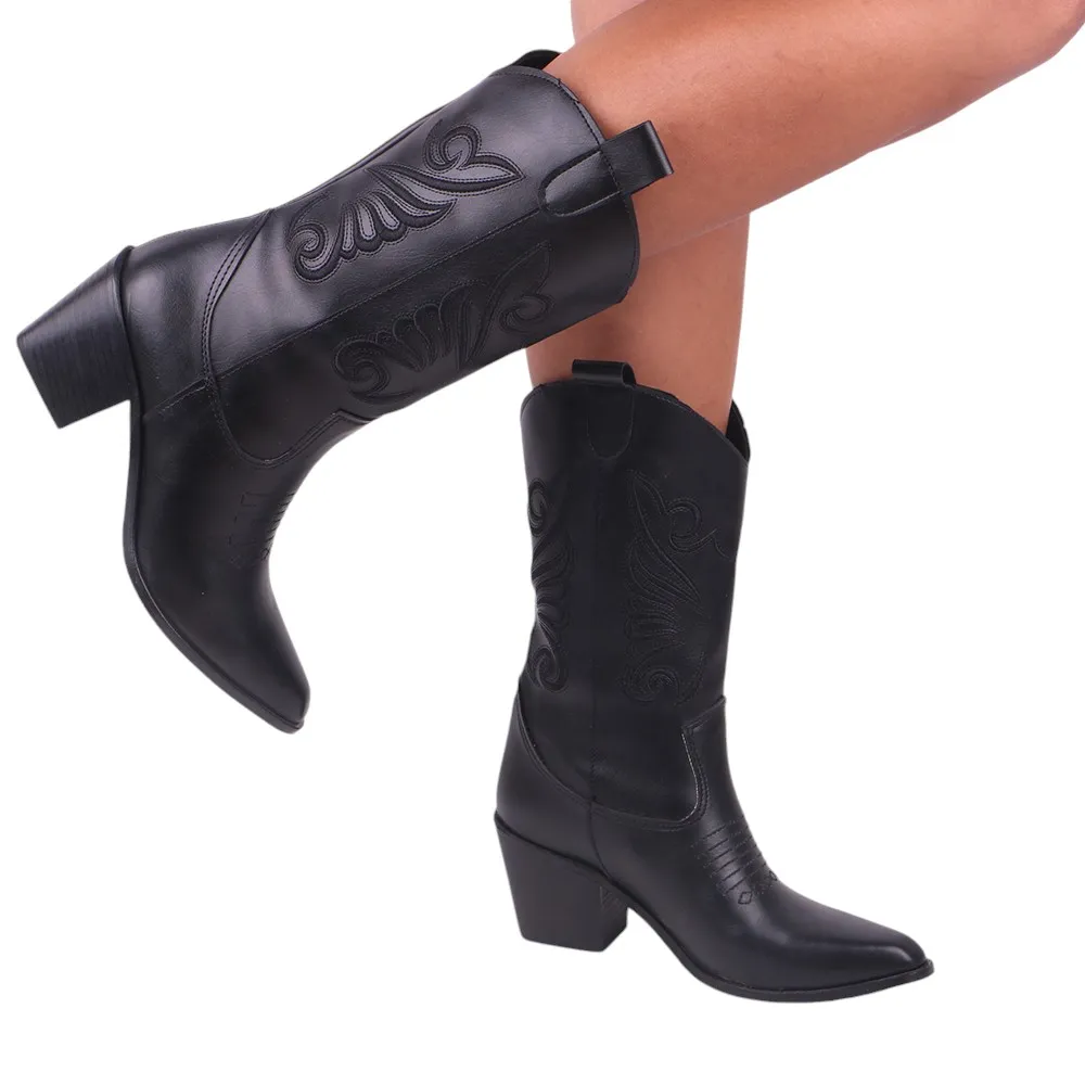 Each pair of Black Embroidered Western Boots for Women features intricate embroidery on high-quality faux leather. The detailed stitching adds a classic Western touch, while the mid block heel offers both height and stability for long-lasting comfort.