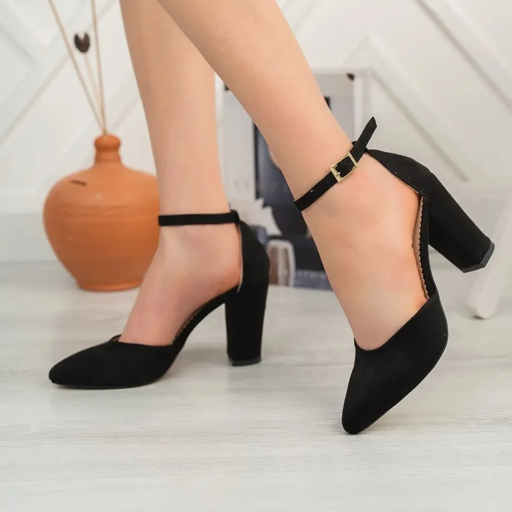 Pair these Black Suede Ankle Strap Pumps with a black cocktail dress for a timeless evening style, or match them with metallic accessories for a coordinated party look. Their radiant finish makes them ideal for weddings, birthday celebrations, or festive events where you want to shine.