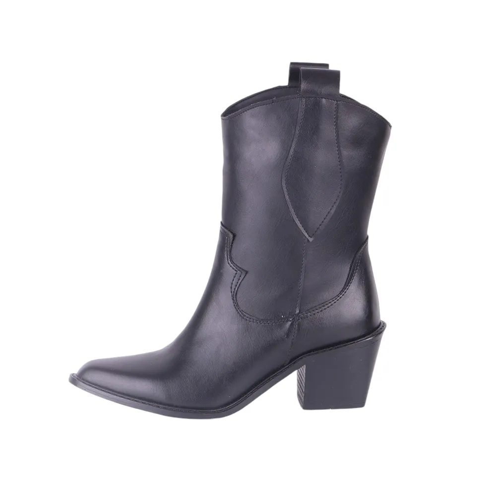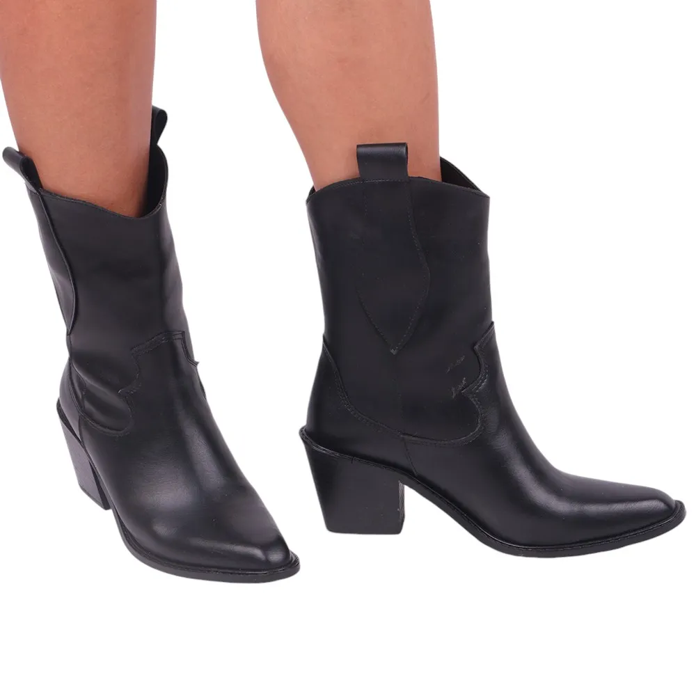 Black Western Ankle Boots Women Mid Block Heel TU-05
