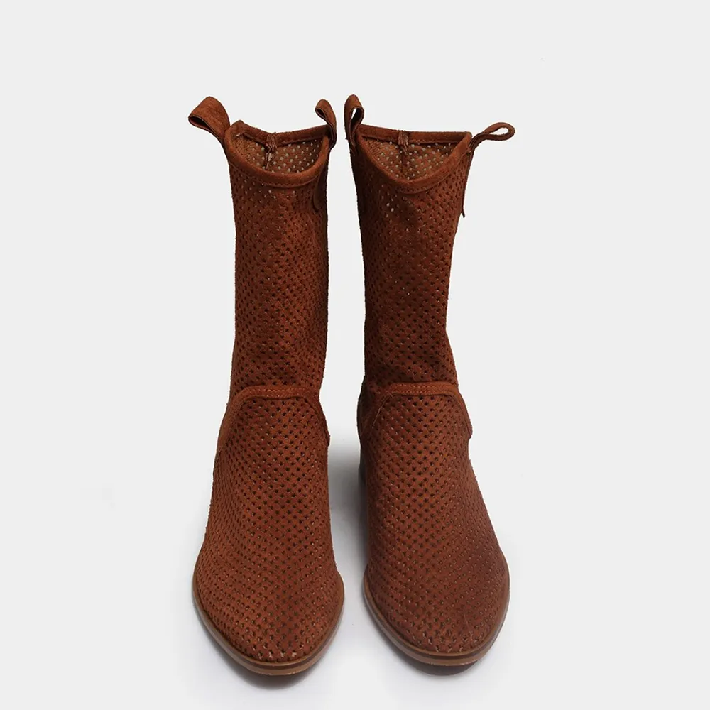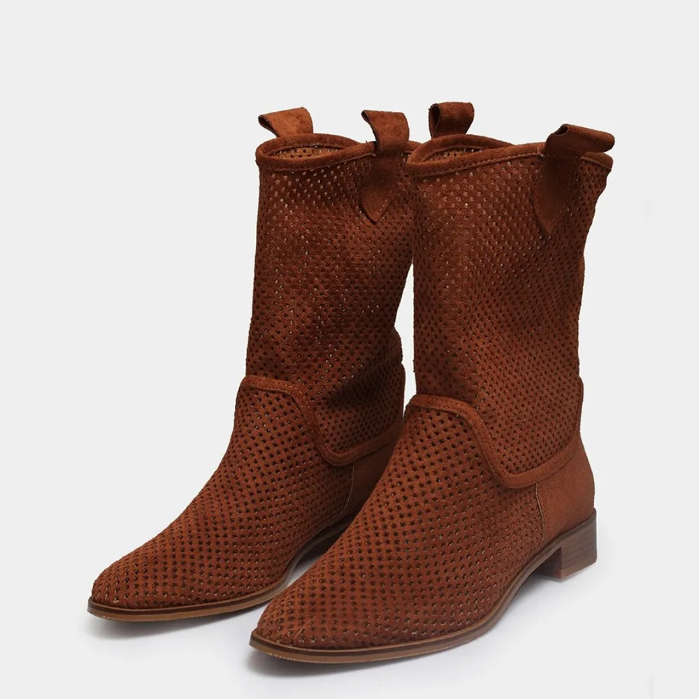 Crafted from soft perforated suede, these boots allow your feet to stay cool even in the heat. The laser-cut perforations create a unique texture that keeps airflow constant, giving you the perfect mix of comfort and elegance all day long.