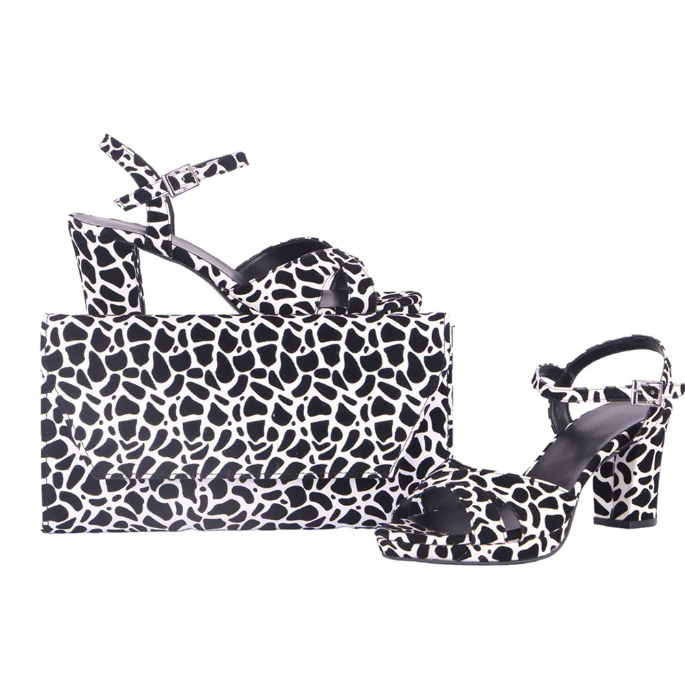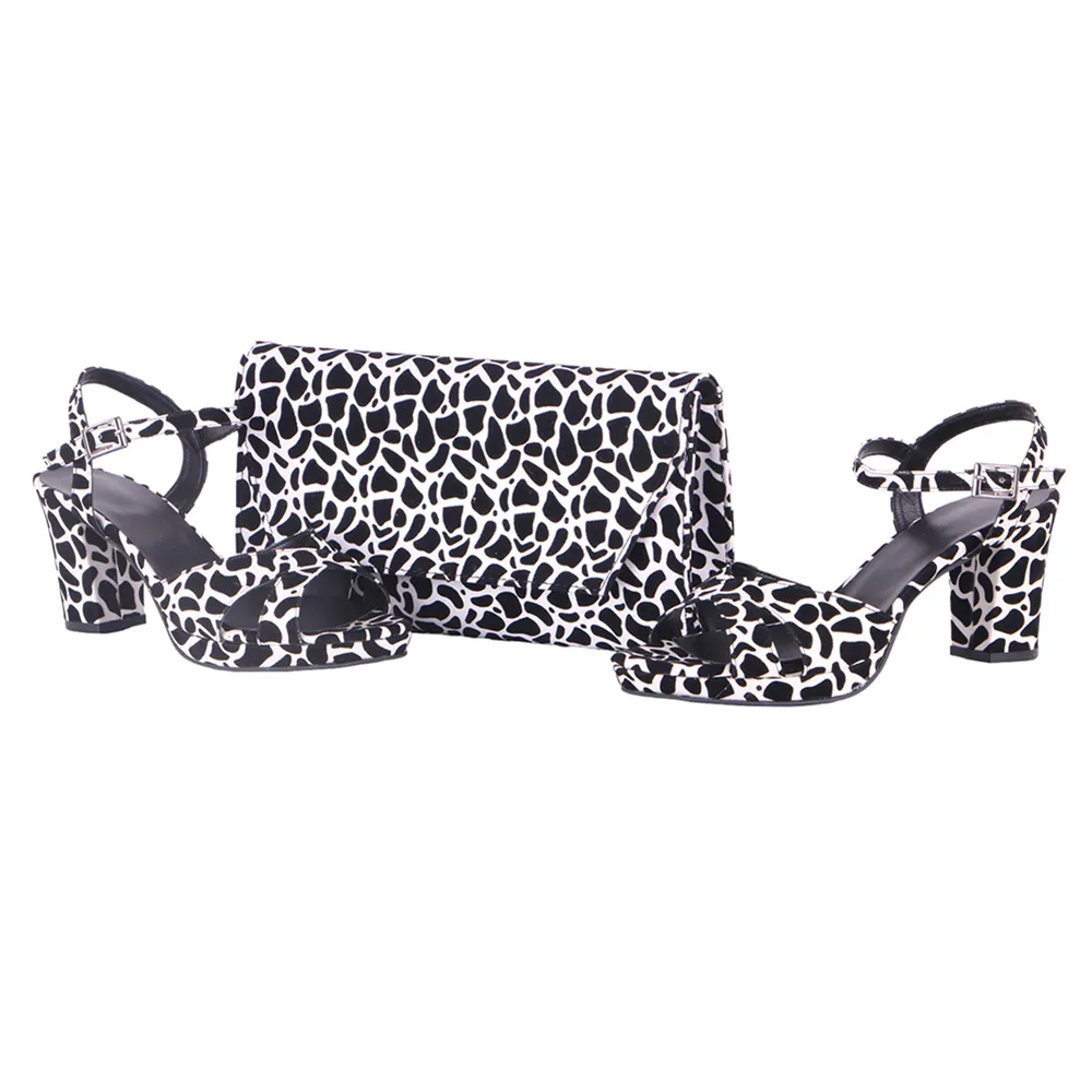Dalmatian Thick Heel Shoes and Clutch Bag Set