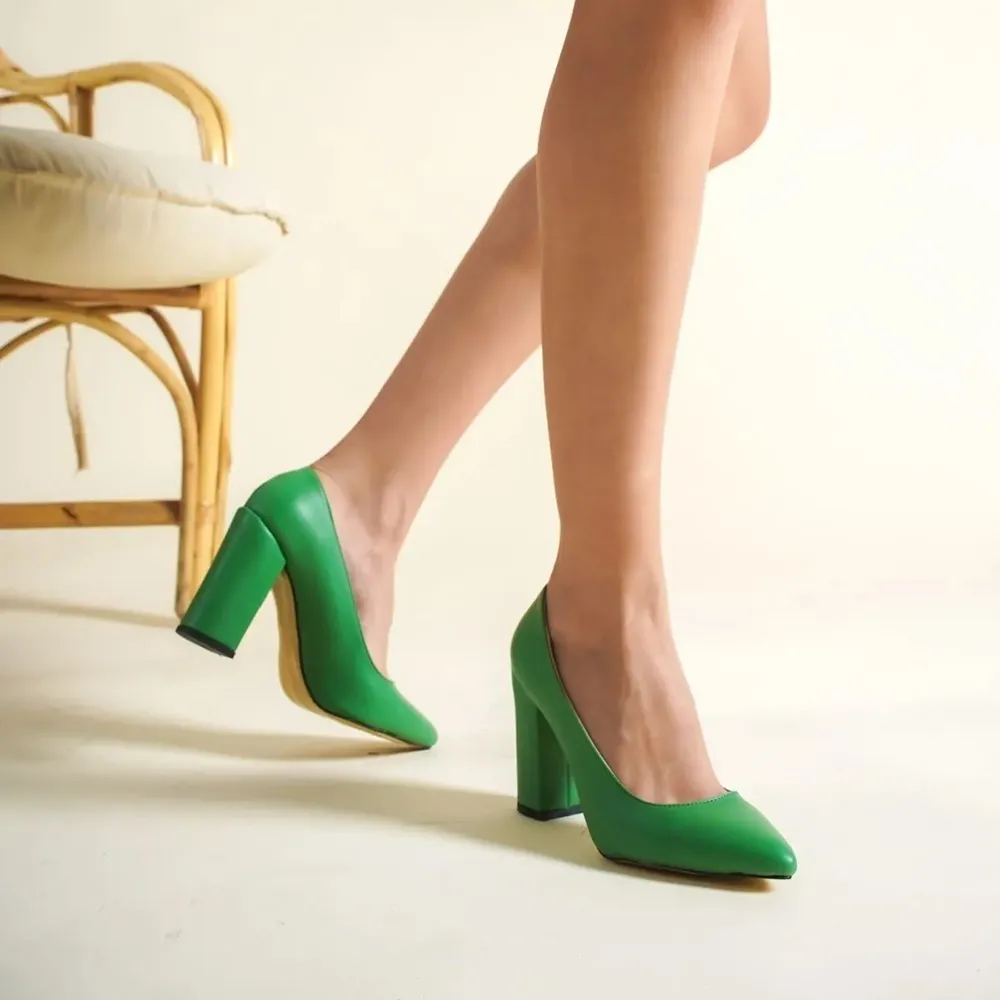 Green Chunky Heels for Women – Elegant & Comfortable