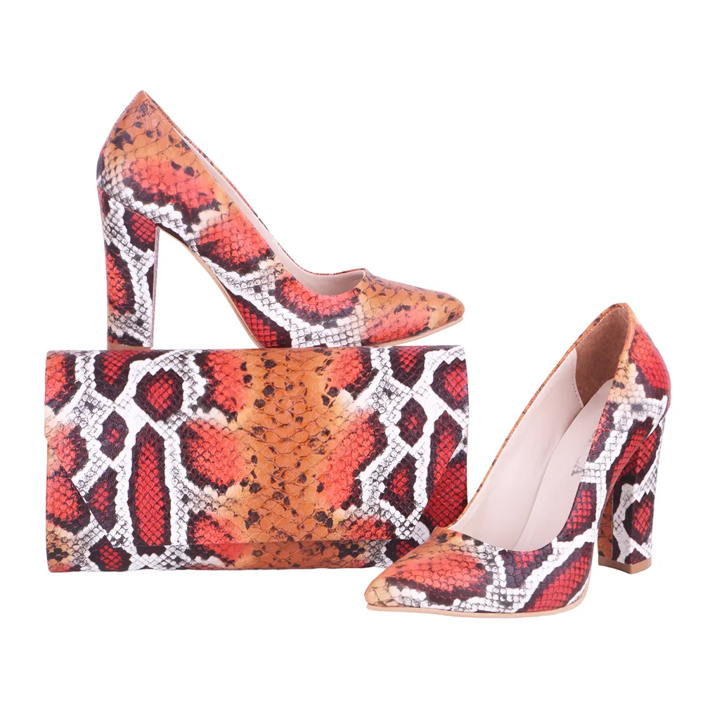 The orange dress shoe and bag set for wedding includes a pair of stylish heels with