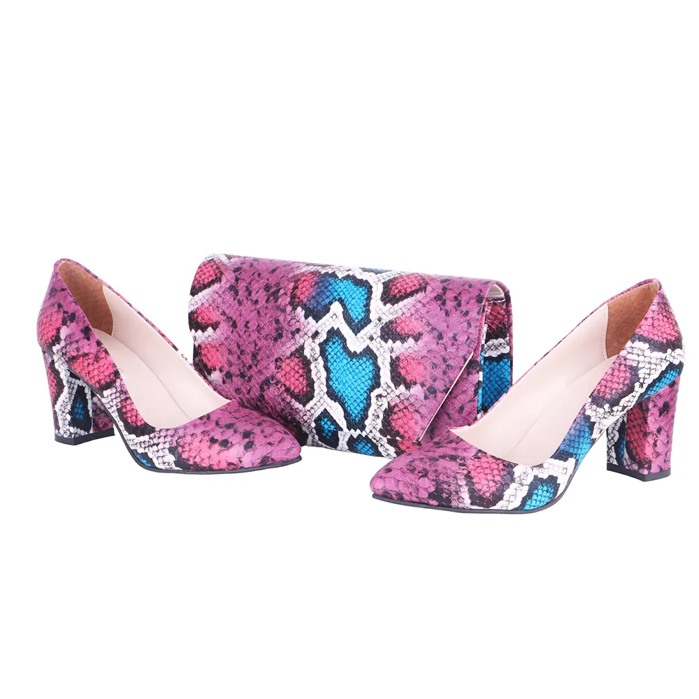 This Matching Purse and Pumps Set for Women features a pair of pointed-toe