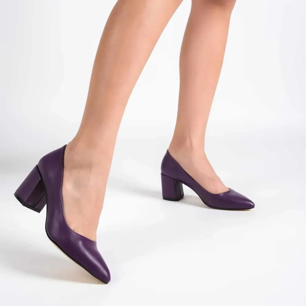 Whether you are heading to the office, attending a wedding, or enjoying a casual day out, these purple low heel shoes complement every outfit. Pair them with dresses, skirts, or tailored pants for a chic and polished look.