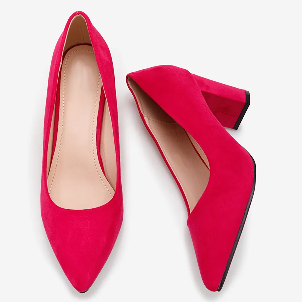 Upgrade your footwear collection today with our red suede Low Heel Shoes for Women and enjoy the perfect blend of comfort and style!