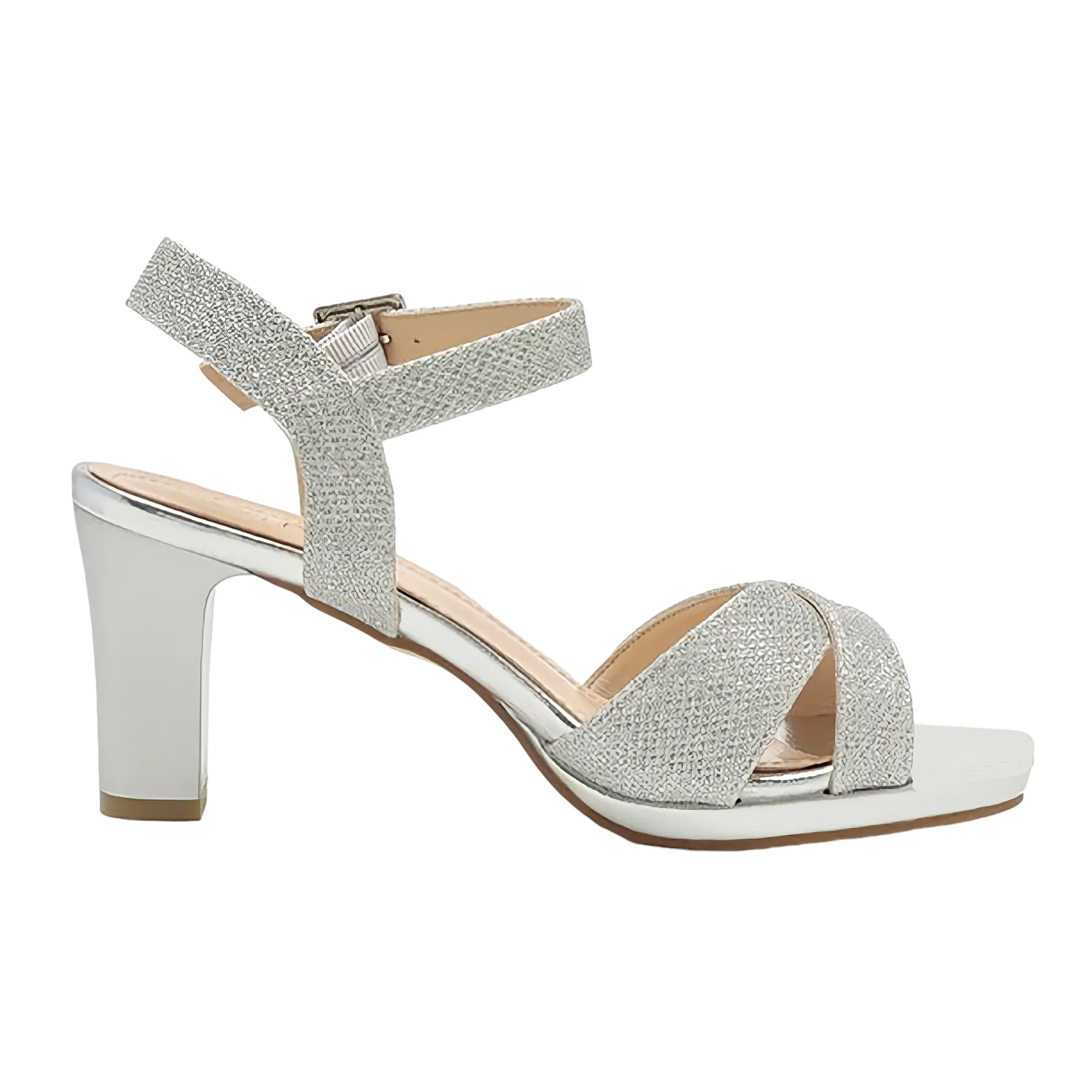 These silver strappy chunky heel sandals are perfect for weddings, cocktail parties, formal events, or adding sparkle to casual looks. Style them effortlessly with dresses, skirts, or even tailored pants for a sophisticated appearance.