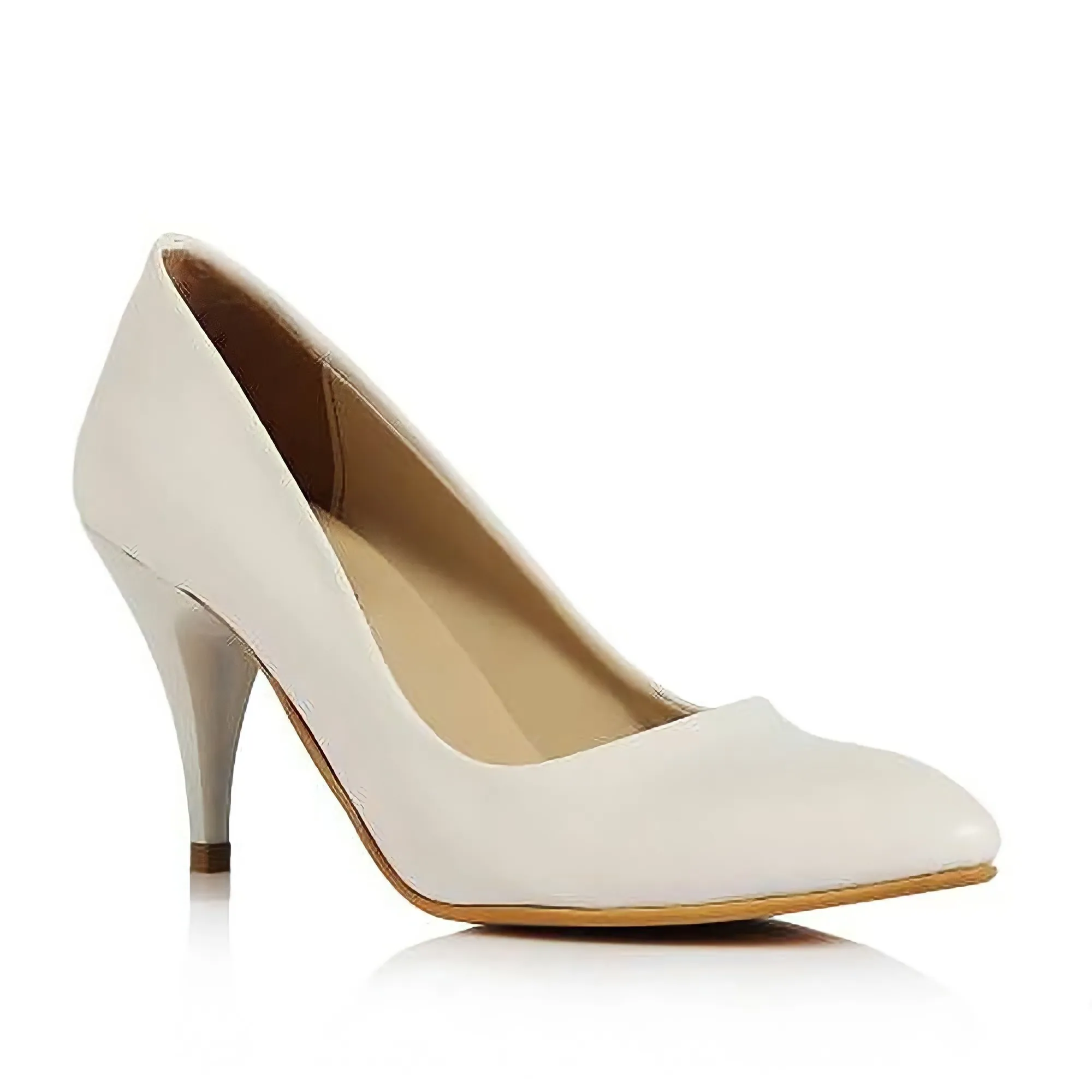 These White low heel pumps are perfect for women seeking a balance between elegance and practicality. The comfortable heel makes them suitable for long hours, while the minimalist design pairs beautifully with both casual and formal outfits.